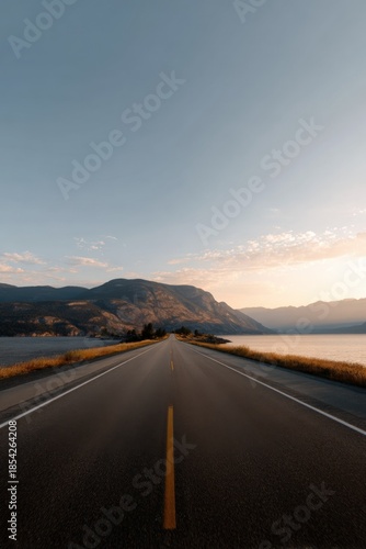 © Andrii Zastrozhnov, Fototapeta premium Scenic mountain road at sunset along lakeside