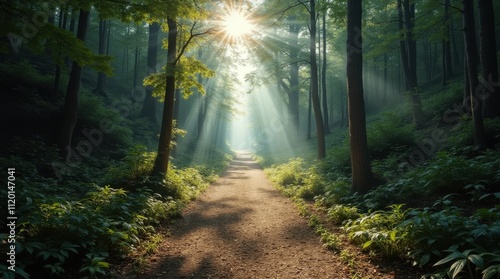 © Burak, Obraz premium Scenic Mountain Trail Through Dense Forest