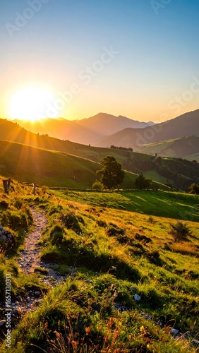 © Shinum, Fototapeta premium Scenic mountain vista at sunset (1)