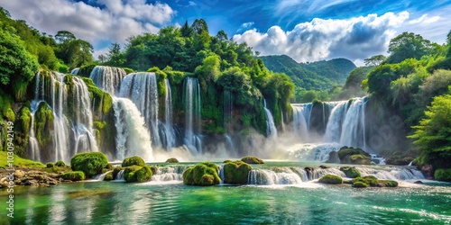 © Anulak, Fototapeta premium Scenic natural landscape with large waterfall