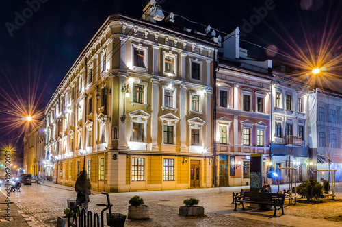 Fototapeta premium Scenic night Lviv cityscape architecture on the long exposure