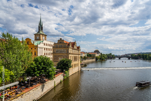 © alzamu79, Fototapeta premium Scenic panorama cityscape view of Moldava river boat Prague in Czech Republic.
