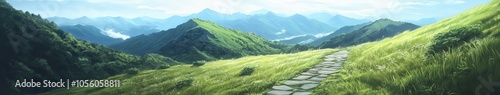 © BrandwayArt, Fototapeta premium Scenic path through lush green hills under a clear blue sky