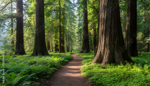 Fototapeta premium Scenic Path through Lush Green Redwood Forest