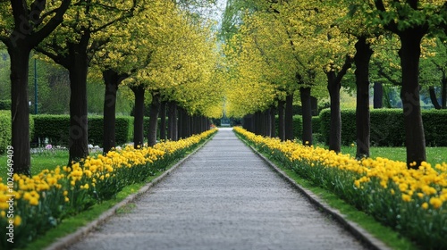 © Lalə, Naklejka premium Scenic path with trees and flowers