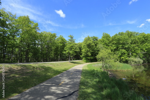 © Yeming, Obraz premium Scenic Pathway Through Lush Green Forest