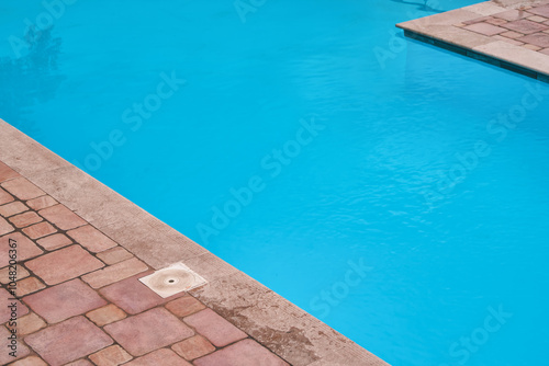 © AlexGo, Obraz premium Scenic pool with nature view and safety railing