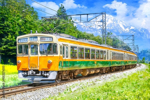 Fototapeta premium Scenic Railway Journey Through Mountains and Fields