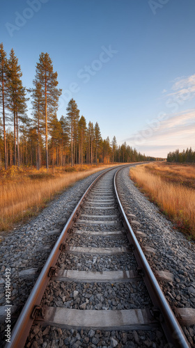 © AT10, Fototapeta premium scenic railway track winding through forest landscape
