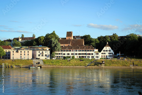 Fototapeta premium Scenic Rhine River embankment in Basel, Switzerland