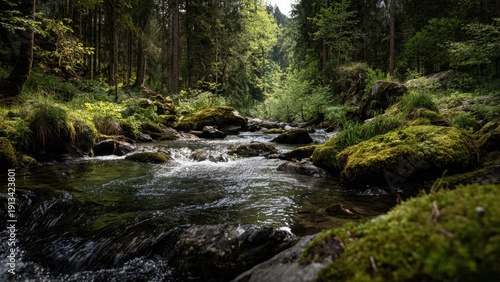 © Imagehub, Obraz premium Scenic River Flowing Through a Lush Forest