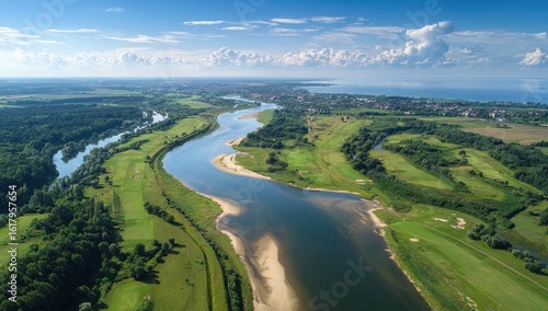 © Gopyx, Obraz premium Scenic river winding through green landscape