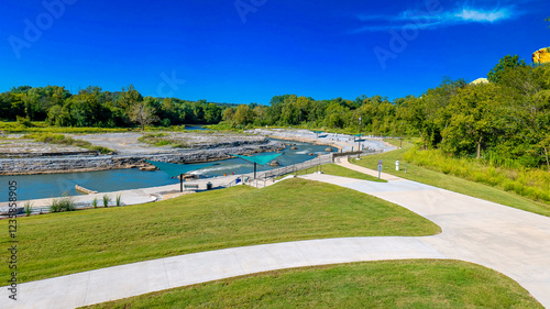 Fototapeta premium Scenic Riverside Park with Walking Paths