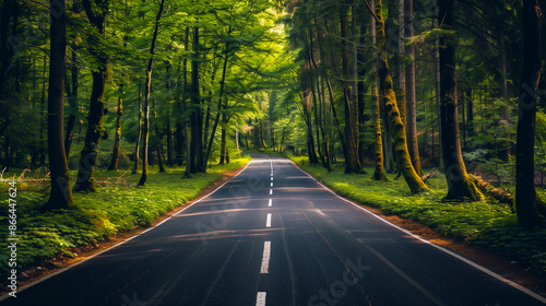 Fototapeta premium Scenic road in the forest with trees on both sides