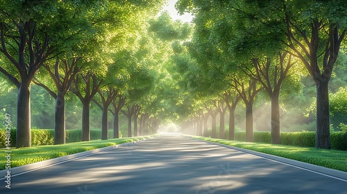 Obraz premium Scenic Road Surrounded By Green Trees In Summer High Resolution Photo