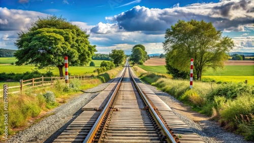 © beng, Obraz premium Scenic road with railway crossing in rural area reflected on water