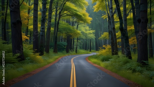 © Iqbal, Obraz premium Scenic route among the forest Generative AI
