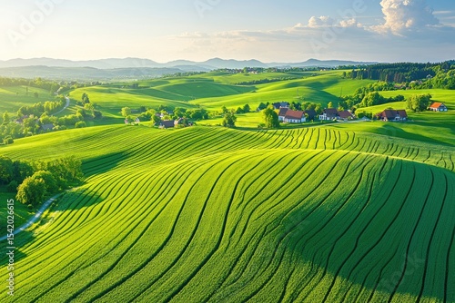 © ika, Fototapeta premium Scenic rural landscape with rolling hills and fields.