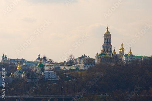 © evgenij84, Fototapeta premium Scenic spring view of famous Kyiv's hills against blue sky. Scenic landscape of ancient Kyiv Pechersk Lavra. It is a historic Orthodox Christian monastery. Kyiv, Ukraine
