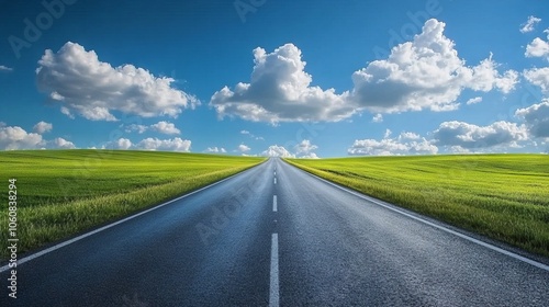 Fototapeta premium Scenic Summer Highway with Green Fields. AI generated illustration