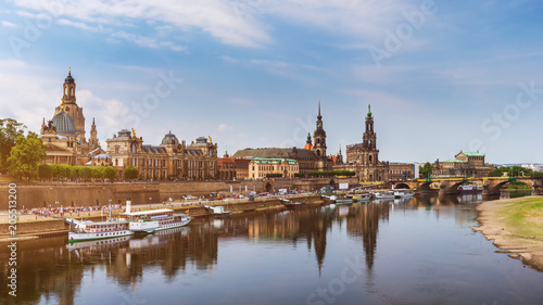 Obraz premium Scenic summer view of the Old Town architecture with Elbe river embankment in Dresden, Saxony, Germany