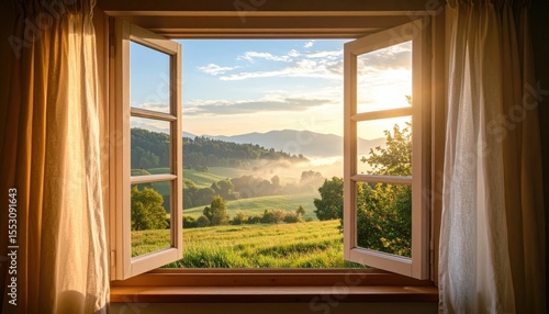 Fototapeta premium Scenic Sunrise View From Window