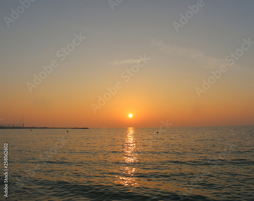 © Abrar, Fototapeta premium Scenic sunset and natural dramatic cloudy sky and sunbeam view over Dubai, United Arab Emirates