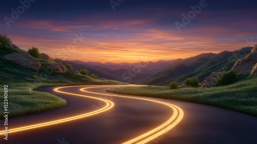 © Narongsag, Fototapeta premium Scenic Sunset Highway Winding Road Mountain Landscape Dramatic Sky
