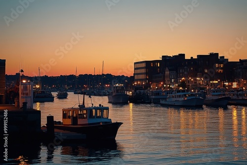 © Mandeep, Fototapeta premium Scenic sunset over a bustling harbor