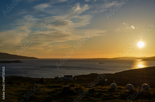 © Gian Luca PB, Fototapeta premium Scenic Sunset Over Isle of Skye Coastline with Grazing Sheep