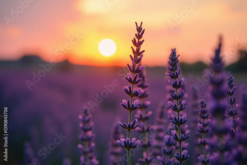 © Abdul, Fototapeta premium Scenic Sunset Over Lavender Field – Lilac Violet Flowers in Summer Provence