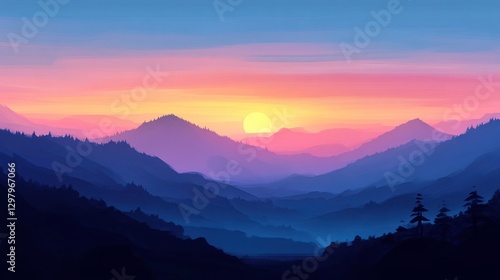 © MyStockz, Fototapeta premium Scenic Sunset Over Mountains with Beautiful Colors