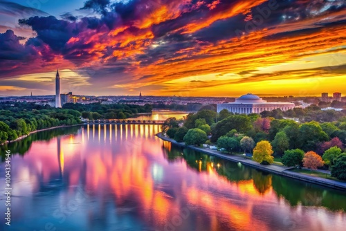 © Man888, Fototapeta premium Scenic Sunset Over Potomac River in Washington DC Highlighting Urban Landscape and Twilight Sky