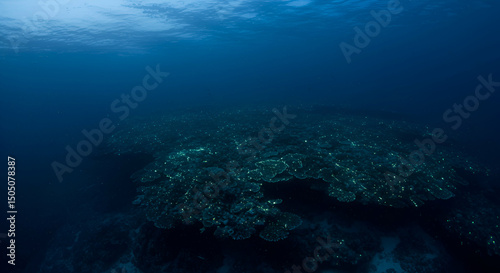 © Fathur, Fototapeta premium Scenic underwater view of a vibrant coral reef system in the deep ocean waters