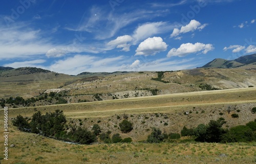 Naklejka premium Scenic view at the Yellowstone River heading toward Gardiner, Montana.