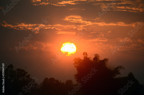Obraz premium Scenic view dramatic beautiful sunset sky. Natural Sunset Sunrise on meadow...