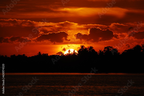 © aFotostock, Obraz premium Scenic view dramatic beautiful sunset sky. Natural Sunset Sunrise on meadow silhouette shadow dark land. Vibrant dramatic sky on sunset, dawn, sunrise in Countryside. Landscape Colorful Sky At Sunset
