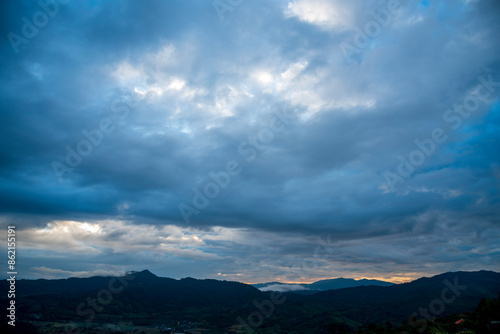 Fototapeta premium Scenic view dramatic beautiful sunset sky. Natural Sunset Sunrise on meadow...
