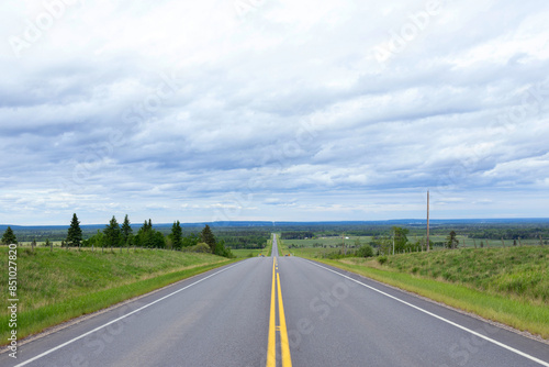 © Saeedatun, Naklejka premium Scenic view from the highway with yellow solid lines in plains.