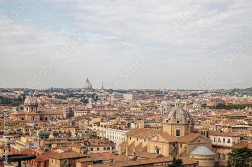 Obraz premium Scenic view from the roof top to the ancient buildings in Rome, Italy.