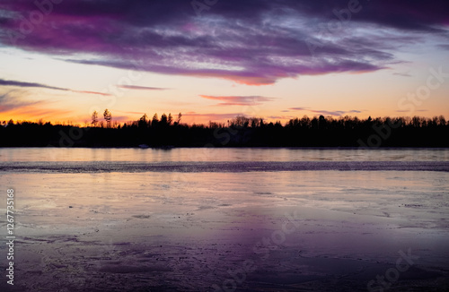 Obraz premium Scenic view of a lake at winter during evening
