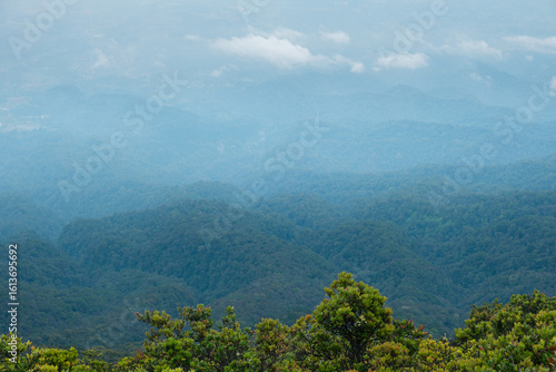 Fototapeta premium Scenic View of a Lush Mountain Forest in Misty Weather