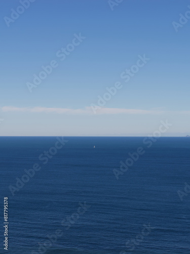 Fototapeta premium Scenic view of a sailboat sailing through the blue sea