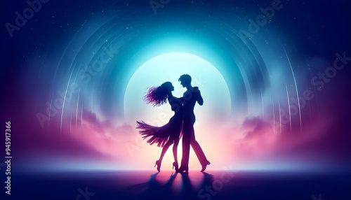 © Anshumali, Fototapeta premium scenic view of a silhouette of a couple performing a dance