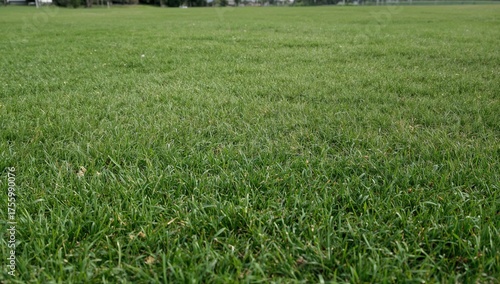 Fototapeta premium Scenic view of a spacious community park featuring lush green grass,...
