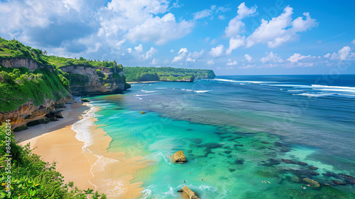 © standret, Fototapeta premium Scenic view of a tropical beach with clear blue water and cliffs