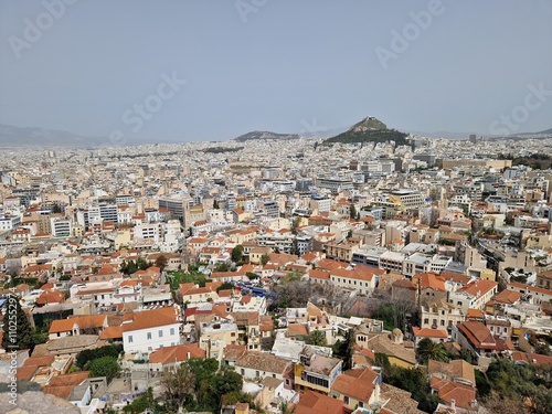 Obraz premium Scenic View of Athens, Greece from the Acropolis with Orange Rooftops and Distant Hills