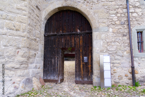 Fototapeta premium Scenic view of castle Kyburg, Canton Zürich, with wooden gate on a sunny late...