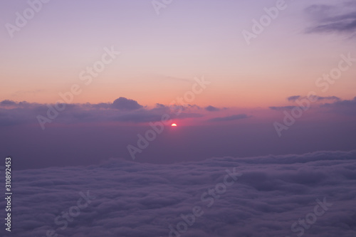 Fototapeta premium Scenic view of clouds and mist at sunrise