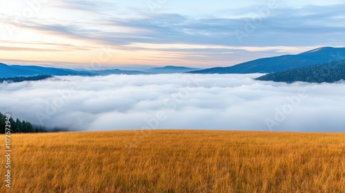 © kwanchanachai, Obraz premium Scenic View of Clouds Over Rolling Hills in Summer Light